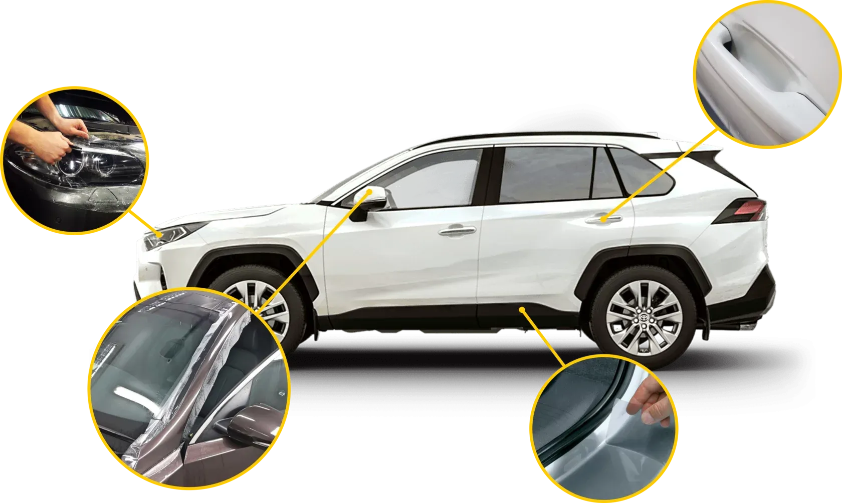 - Защита стоек, крыши, капота и зеркал от попадания камней при движении